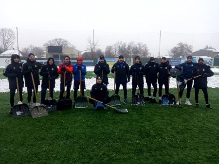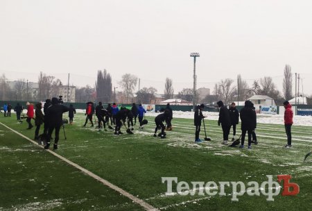 Кілька днів сніг вкривав вулиці Кременчука, не виключенням став і стадіон «Кремінь-Арена». Трибуни й газон покрилися снігом і кіркою льоду. На боротьбу зі стихією підключили важку техніку - комунальну техніку. Осторонь не залишилися адміністративний та тренерський склад Кременя. Лопати до рук взяли й футболісти «Кременя».