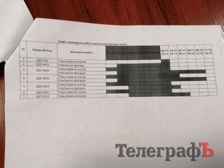 5 листопада на спільному засіданні депутатських комісій до рук журналістів Телеграфа потрапив графік завершення ремонтів у кременчуцьких дитсадках. Трохи раніше під мерією батьки змусили мера підписати такий же.