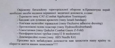 Акція "Телеграфа" на допомогу українським військовим. Ми закликаємо кременчужан надати посильну допомогу нашим солдатам.