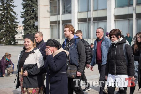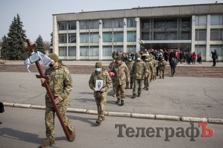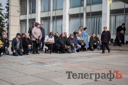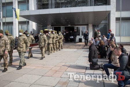 Під мелодію «Плине кача…» та звуки духового оркестру кременчужани на колінах віддали шану захиснику України.