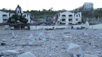 Обстріл стався о 16:20 у Київському районі Одеси. Одну з ракет збила ППО, дві інші влучили в житловий район та зруйнували зону відпочинку. На місці виникла пожежа. Під завалами опинилися близько 300 кв. м. Поранених немає.