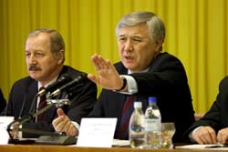 Обласних високопосадовців зібрали в залі засідань облдержадміністрації заздалегідь. Мовляв, охорона вимагає, аби за півгодини всі вже сиділи на місцях. Прем’єр, на відміну від Президента, майже не спізнився і з самого початку всіх попередив: “Працюємо півтори години. Далі у мене все розписано по хвилинах”. Попросив виступати коротко. „Побалакати довше може губернатор і я”, – додав він під усмішки присутніх. Після цих слів на трибуну викликали губернатора Степана Бульбу. Губернатор хвилин 15 переважно вихвалявся здобутками влади (ріст виробництва, залучення інвестицій), планами на майбутнє (будівництво гігантського комплексу по вирощуванню курей і переробці курячого м’яса, а також будівництво заводу з виробництва біоетанолу та електрометалургійного комбінату “Ворскла-сталь”) та просив допомоги (надання коштів для будівництва корпусу обласної лікарні, вирішення м’ясо-молочної війни між Україною та Росією, надання коштів та пільг сільгоспвиробникам).