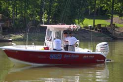 Это была обязательная часть нашей развлекательной программы – поморозить наших девчонок в 4 утра на озере Мьюррей, чтоб им жизнь мёдом не казалась. Озеро у них очень большое, размером с половину нашего водохранилища, много живописных островов (местные их называют «бомбинговыми» – во время войны дальние бомбардировщики Б-17 тренировались здесь в бомбометании). Поэтому на озере много ям, где, как известно каждому рыбаку, добыча плавает. Конечно, всё вокруг настолько окультурено, что аж тошнит! Народ подъезжает на своих быкоподобных джипах с прицепленными сзади катерами, размером с КрАЗ (вот для чего им джипы нужны!). Катера блестят даже в темноте – у нас по Днепру иногда богатенькие киевские и днепропетровские «буратины» на таких проносятся. У них это норма. У причала стоят два плавучих «аквариума», продают живца для рыбаков. Всё аккуратно, чистенько, и табличка перед въездом на причал: «Алкоголь запрещён».