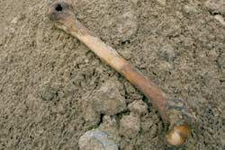 Журналісти разом з фотокореспондентом виїхали на вказане місце. Будівельники поводились стримано. Екскаваторник пояснив, що він – коли риє землю – не встигає дивитися, що там вирилося. Інші ж працівники посилалися на те, що працюють тут недавно і нічого такого про кістки не чули. Фотокор “Телеграфа” все-таки полазив по відвалах, куди висипали землю. Він знайшов кістку – велику, потемнілу і стару у свіжій землі.
