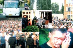 БОЙОВИКИ. 25 серпня до райвідділів було доставлено 54 особи, яких підозрюють у штурмі підприємства. 30 з них мешканці Києва та області. 14 – з Черкаської області. Середній вік затриманих – 20-26 років. Як повідомив заступник начальника міського управління міліції Анатолій Михайлик, у своїх свідченнях вони заявили про суми оплати за напад. Вони коливаються від 50 до 500 доларів, однак багато хто каже, що нічого не отримував. “Всіх цих людей зібрали в київському Гідропарку, посадили в автобуси і не сказали куди і навіщо везуть. Вже в Кременчуці вони одержали завдання змінити охорону заводу. Члени групи один одного майже не знають. Міліція затримала їх не при захопленні заводу, а пізніше коли вони намагалися виїхати з міста. Можливо частина таки виїхала’, – каже Анатолій Михайлик.