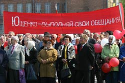 Святковий день – не привід вилежуватися на дивані. Тим більше, коли пролетарський гнів калатає в грудях і не дає спати. Тому рівно о 9.30, у неділю, 1 травня, колона кременчуцьких комуністів, робітників та співчуваючих почала ходу протесту від ПК “Кредмаш”. Були часи, коли колона ця, розвернувшись, займала половину вулиці Леніна. Але лави непримиренних борців рідіють з кожним роком. Цього разу на демонстрацію вийшло близько 300 кременчужан.