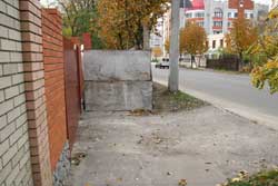 Саме з такими претензіями до редакції звернулося кілька кременчужанок. Вони скаржились на те, що у центральній частині міста будівельники поперегороджували парканами пішохідні тротуари, і дорослим та дітям доводиться оббігати барикади по дорозі. Таких барикад кілька. Одна – на перехресті вулиць Радянської та Красіна. Там зводиться приватний будинок священнослужителя, і будівельники взяли і вигородили собі шматок тротуару. Коли ‘Телеграф’ звернувся до них із запитаннями щодо законності такої барикади, її пообіцяли розібрати протягом двох діб. Але вона і нині там.