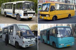 На фото ті автобуси, у яких, за словами пана Кургаєва, можна їздити по 75 копійок. Це «Forland», «Богдан», «ПАЗ» та «Еталон». У цих автобусах можуть безкоштовно їздити «пільговики». З маленьких маршруток їх «вигнали», хоча деякі перевізники продовжують во