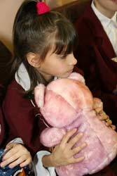 Наташа одразу вхопилася за рожевого ведмедика. Вона – найменша в інтернаті. Не за віком. За вагою. Бо майже до п’яти років харчувалася лише молоком, яке приносив брат – теж учень інтернату.
