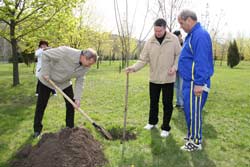 Клен у парку Миру садили втрьох: віце-губернатор Сергій Кожемя’ко, перший віце-мер Кременчука Володимир Онищенко та голова автозаводської райради Володимир Коваленко