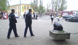 У суботу, 28 квітня, близько 18.00, у приміщенні міського управління міліції відбувається інструктаж і близько 40 патрульних міліціянтів вийдуть на маршрути. Після видачі зброї, правоохоронці починають роботу. «Телеграфу» дісталося патрулювати маршрут «Центральний ринок – залізничний вокзал». Разом із патрульними Миколою та Стасом рушаємо до ринку. У сквері Жовтневому на нашу неквапливу процесію звертають увагу всі, від малого до великого.