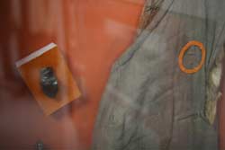 Осколок та пробита жилетка Юрія Соколова, генерал-майора 233 Кременчуцької стрілецької дивізії. Генерал-майор був поранений під час визволення Кременчука. Після операції лікарі подарували йому на пам’ять осколок, який він залишив разом з пробитою жилеткою у музеї. Серед його речей тут також «парадні» шабля та шпори.