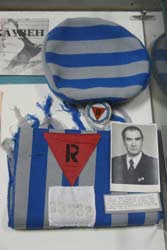 У подібних беретах та шарфах ходили в’язні концтаборів. Це – копія, котру подарували колишньому в’язню Домашичу на зустрічі з ветеранами – на згадку.