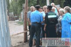 Міліцію люди сприйняли вороже: «Чого приїхали? Ми самі тут розберемося! Не заважайте! Все одно вночі все розламаємо!» До мітингуючих під’їхав начальник охорони будівництва, як він сам представився. Чоловік пояснив, що завтра об’єкт буде під наглядом державної служби охорони. Далі правоохоронці запросили його до «бобика». Начальник чергової частини міськуправління міліції Віктор Шемет, після розмови з охоронцем повідомив людям, що до нього під’їде керівник будівництва з усіма документами. «Я поясню йому, що необхідно зустрітися з людьми, – каже Віктор Шемет. – Гадаю, що він мене зрозуміє».