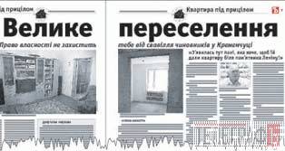 У 26-му номері «Телеграфа» (від 28.06.2007), у рамках проекту «Квартира під прицілом», був надрукований матеріал журналістського розслідування «Велике переселення». Ми розповіли історію виселення Марини Макарової. Марина купила двокімнатну квартиру у будинку № 13 по вулиці Бутиріна, зробила ремонт і жила там разом з сім’єю з 1997 по 2007 рік. А потім її викликав начальник комунального підприємства «Квартирне управління» пан Обідчук і повідомив, що будинок № 13 знесуть, як ветхий; на його місці філія «Придніпровські магістральні нафтопроводи» побудує багатоповерховий будинок; а мешканців будинку № 13 відселять кого куди. І Марину теж – хоче вона цього, чи ні.