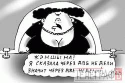 Приїхали. Там стоїть така солідна дама. Кидаємось до неї – оформіть документи! Дама недбало кидає: «Чекайте». Намагаємось її затримати: «Пані, ми почекаємо, але ж потім у вас почнеться перерва?!» У відповідь чуємо сакраментальне: «Жэнш-ш-шина, ждите!!!»