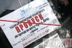 Так виглядає перепустка від фірми „Талєкріс”. На ній – нібито віза ДАІ Кременчука, є прізвище начальника ДАІ Федора Васильківа. Проте, уважно придивившись, бачимо лише один підпис – Юрія Мягкого, директора фірми „Талєкріс”, і відбиток печатки цього ж підприємситва. В ДАІ офіційно заявляють, що ніякого відношення до перепусток не мають, скільки їх видано – не знають, і Федір Васильків не підписав жодної з них. Але фірма „Талєкріс” працює „під брендом” ДАІ –мабуть, для солідності.