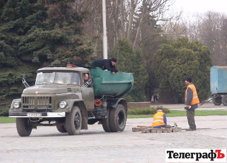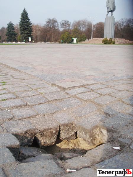 Более трех недель на площади Победы коммунальщики не ликвидировали провал камней. Как рассказал вице-мэр Василий Хоменко, он сообщил о провале в УЖКХ еще несколько недель тому, однако реакции не последовало. В пятницу на аппаратном совещании Василий Хоменко раскритиковал руководство УЖКХ в невыполнении ремонта площади и пообещал самостоятельно отремонтировать площадь. Если на это не способны коммунальщики. Похоже, критика возымела место, и сегодня на площади начался ремонт.