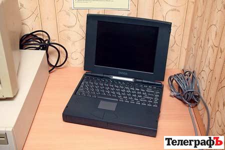 Первый ноутбук появился ещё в 1981 году. Он весил около 10 килограммов и не имел собственной батареи. Экземпляр (на фото) пришёл к нам из середины 90-х годов. Он работает на базе процессора Intel Pentium. Поддерживает работу Windows’98, имеет винчестер (жёсткий диск) на 800 Мб, цветной дисплей (800 на 600 точек) и флоппи-дисковод. Розовых ноутбуков и «со стразиками» в те времена не было…