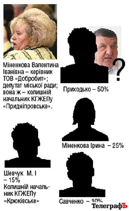 У списку засновників нас найбільше зацікавив пан Приходько. З колишнім начальником КГЖЕПу «Крюківське» та з Іриною Міненковою все цілком зрозуміло – шлях, яким вони стали засновниками компанії, що перебрала на себе функції КГЖЕПів, типовий. А от як скромний, не публічний пан Приходько став власником 50% статутного фонду такої «закритої» КГЖЕПівської компанії? Щоби розпитати про це, ми з’їздили до його скромного багатоповерхового будинку на не менш скромному Молодіжному, посиділи, почекали, але розмова не відбулася. Автовідповідач мобільного телефону пана засновника чемно повідомив: «На жаль, місця для запису вашого повідомлення не залишилось». Шкода. Адже наше повідомлення було таке коротеньке. Ми хотіли запитати: хто запропонував пану Приходьку стати співзасновником компанії? Раптом, не свекор його сестри – впливовий депутат та голова депутатської фракції у міськраді пан Черниш?