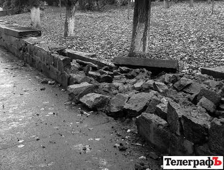 Зруйнований парапет біля центральної алеї парку «Придніпровський». Віце-мер Василь Хоменко, побачивши це неподобство практично біля виконкому, звернувся до міліції. Як виявилося, правоохоронці нічого не знали про інцидент. Згодом стало відомо, що камера спостереження зафіксувала веселу компанію на автівці, яка відпочивала вночі на місці пригоди. Міліція проводить перевірку.