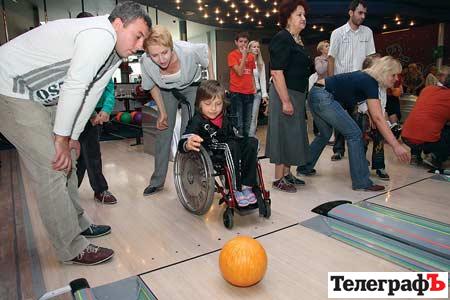 – Не вагайся, зроби страйк та збий усі кеглі, – наставляв свою подругу на візку перед відповідальним кидком кулі один із юнаків. І дев‘ятирічна Настя Сліпич, дуже вміло збивала кеглі та заробляла очки для своєї команди, не зважаючи на інвалідний візок. У ході гри переможцем стала група дітей, що об’єдналася в збірну – «Команду енергійних і динамічних».