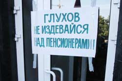 “Глухов, відміни підвищення комунальних тарифів”, “Можновладці, ви залізли в наші кишені, безпідставно піднявши 30 травня тарифи на комунальні послуги!”, “Ні підвищенню цін”. З такими транспарантами та викликами “Ганьба!” зранку 7 липня, біля мерії, зустрічали можновладців близько 50 кременчужан. Відгукнувшись на заклик міськкому Компартії України, вони ще о 7.15 заблокували урнами та плакатами вхід до адмінбудинку і почали чекати мера та його заступників.