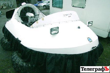 – Це судно на повітряній подушці. Ми купили його для проведення гідрологічних робіт, – розповідає головний інженер фірми «Дайвер» Сергій Биканов. – У судні встановлено двигун від маленького літака. Потік повітря іде під днище, завдяки цьому амфібія піднімається. Плюс виникає тяга, яка дозволяє рухатися вперед-назад. Поки що судно стоїть, запустити його в роботу ми плануємо у квітні.