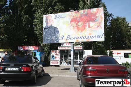 – Ви подивіться, у Кременчуці й досі Великдень! – іронізує у маршрутці літня жінка, котра вгледіла біля Пивзаводу рекламний щит. Із нього одна з місцевих фірм вітає городян із Великоднем.