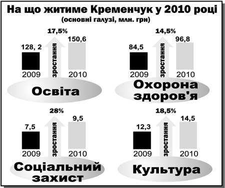 Фонд оплати праці бюджетників збільшиться на 13,3% порівняно з поточним роком. Тетяна Неіленко, заступник міського голови, звертає увагу, що на вчителів, лікарів, працівників культури очікує у 2010 році п‘ять підвищень заробітної плати. Тобто передбачено, що розмір посадового окладу працівників першого тарифного розряду зростатиме поступово від 555 грн з першого січня до 589 грн на перше грудня 2010 року. (Нині – 545 грн). Від цього базового окладу розраховуються і ставки більш кваліфікованих працівників. Проте, як бачимо, саме підвищення не буде значним. І не лише для малокваліфікованих працівників.