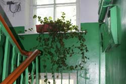 Це під’їзд “немолодої” триповерхівки (вул.60-річчя Жовтня, 112). Стіни поштукатурені, побілені і пофарбовані. На вікні – квіти. Олександра Іванівна з першого поверху розповіла “Телеграфу”, що у мешканців уже не було сил чекати, коли ЖЕД візьметься за справу, і вони взяли ініціативу у свої руки. Років три-чотири тому зібрали кошти, придбали матеріали, запросили бригаду. “Здається, працювали у нас ті ж самі жедівці, ми їм запропонували зробити нам ремонт з наших матеріалів”, – каже Олександра Іванівна.