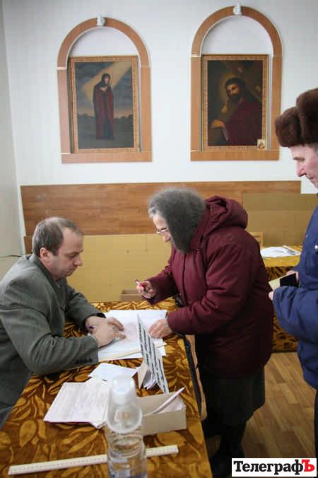 Хоча церква відокремлена від держави, однак у Кременчуці політика таки взяла гору над релігією: мешканці Крюкова голосували за Президента в одному з приміщень Свято-Успенської церкви.