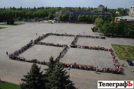 В Кременчуге в честь Дня Победы в рамках акции «Георгиевская лента» около тысячи человек выстроилось цифрой «65» на главной площади города перед мэрией. Как сообщил организатор акции Юрий Гриценко, подобная акции в городе проводится впервые.