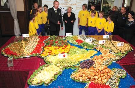 Учасники футбольної команди ліцею №4, що допомагали кухарям викладати карту з готових продуктів, відзначили на ній символічними прапорцями Кременчук та міста, де проводитиметься чемпіонат. Автори карти також відзначили регіони України – кожен з них був складений з якогось певного продукту. Крим «закидали» помідорами та яйцями, Київ був у свіжих овочах, а Кременчук у зеленому перці. Карту з’їли гості презентації. У хід ішло все, окрім Дніпра та моря – їх виготовили із застиглого рибного бульйону і додали блакитного барвника, тож популярністю вони не користувались.