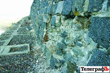 Із боку паркової зони дамба, на якій полюбляють відпочивати кременчужани у теплі пори року, виглядає цілком пристойно. Та якщо спуститися вниз і попрямувати від скелі „Гранітний реєстр” по намитій піщаній косі, побачиш доволі вражаючі „дірки” у кам‘яній стіні.