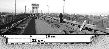 То чому ж асфальтове покриття на мосту так швидко руйнується? Валерій Киреєв пояснює це тим, що на ремонтних роботах «Укрзалізниця» зекономила – на свій лад: