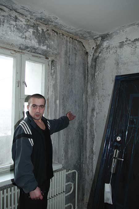 Аналогічна проблема і в Любові Животовської (квартира №39). Сім‘я зробила сучасний ремонт. Тепер дорогі шпалери на стінах почорніли, а господиня весь час «озброєна» ганчіркою та шваброю – підтирає цвіль зі стін.