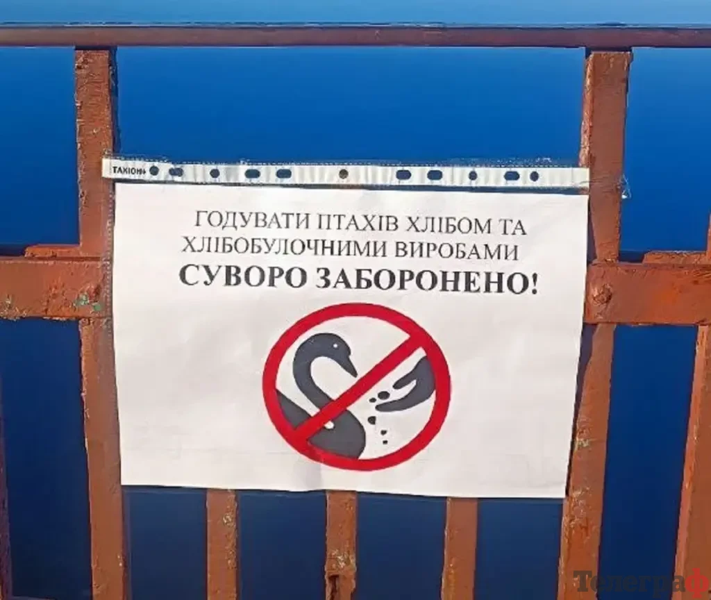У Придніпровському парку з’явилися оголошення із проханням не годувати птахів хлібом і булочками. Про це повідомляє кореспондентка «Кременчуцького Телеграфа».