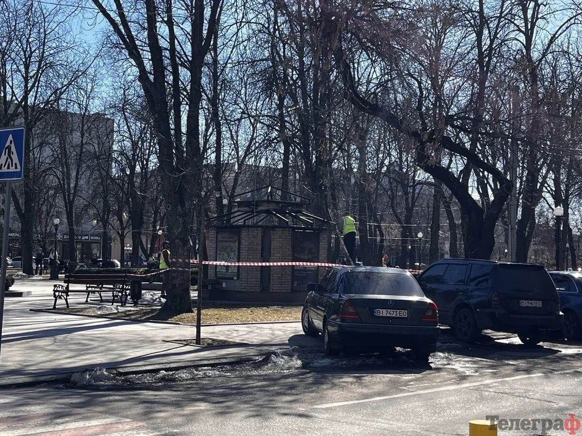 Охоронну споруду у сквері Бабаєва відновлюють. Про це 11 березня повідомила кореспондентка «Кременчуцького Телеграфа» з місця події.