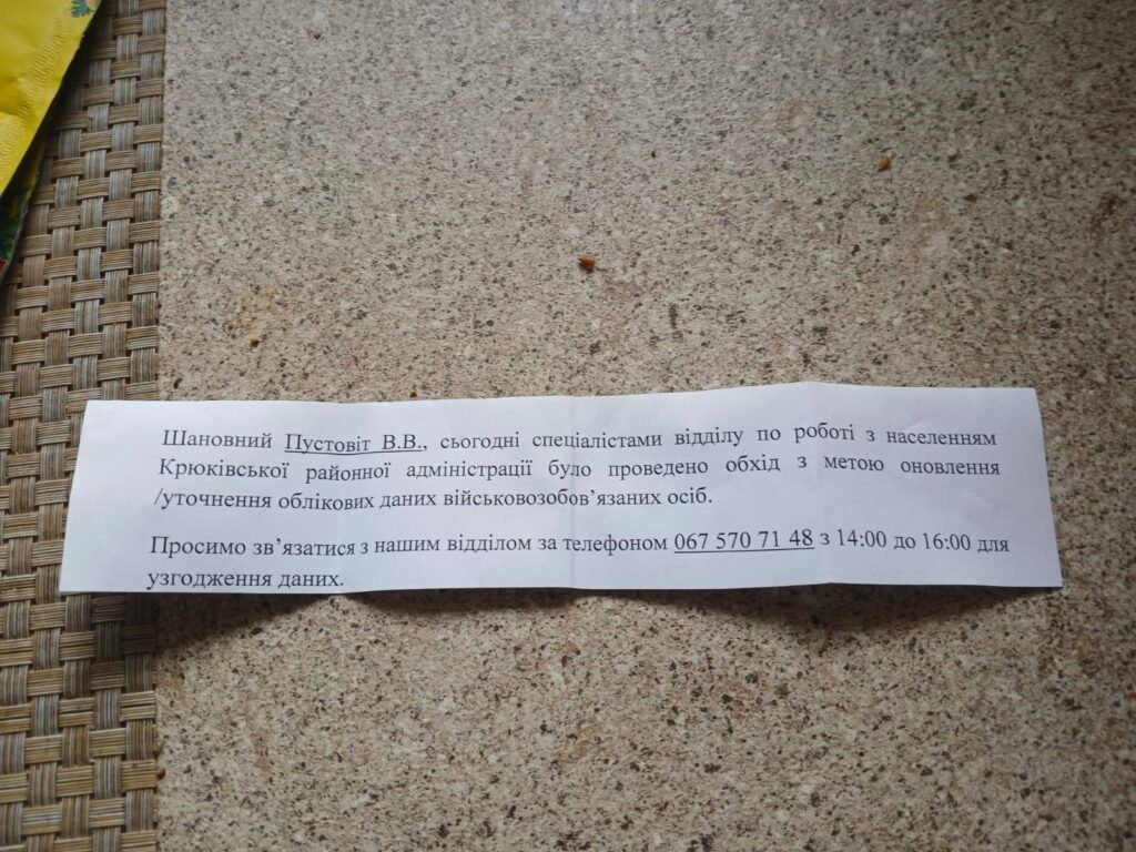 «Кременчуцькому Телеграфу» вдалося уточнити ситуацію стосовно цього у представників Кременчуцького районного територіального центру комплектування та соціальної підтримки. Вони в свою чергу уточнили інформацію у Крюківській районній адміністрації.