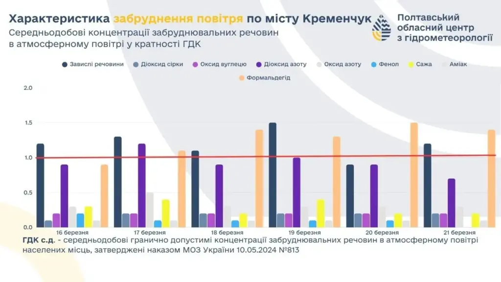 У Кременчуці протягом 16–21 березня 2026 року проводили моніторинг якості атмосферного повітря на чотирьох стаціонарних постах у різних районах міста. Про це повідомляє Полтавський обласний центр з гідрометеорології.