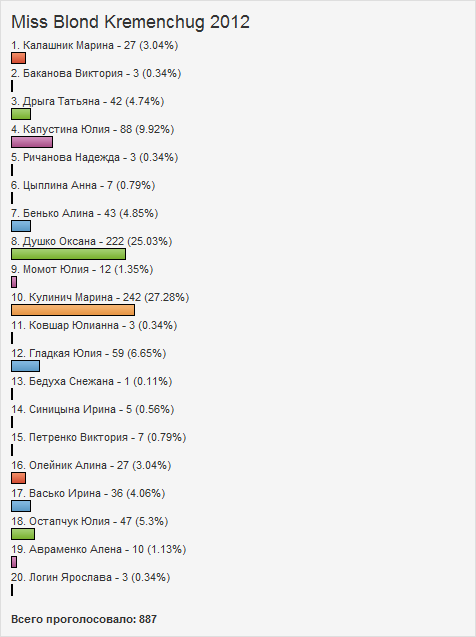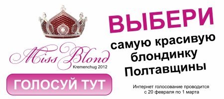 Сам конкурс состоится 3 марта в COCKTAIL CLUB «JOSS» (начало в 21.00), где компетентное жюри выберет «Miss Blond Kremenchug 2012» которая будет представлять нашу область на Всеукраинском конкурсе «Miss Blond Ukraine 2012».