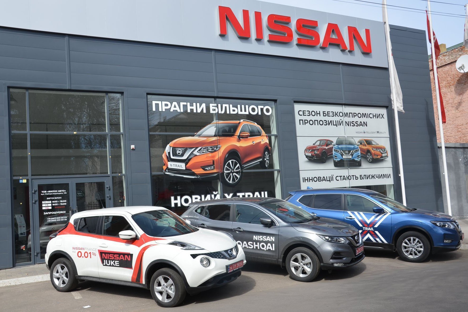 - автосалон Nissan по вул. Майора Борищак, 19Б (поруч з центральним пологовим будинком), в якому представлені автомобілі марки Nissan – Juke, Qashqai, X-Trail і пікап Navara. Тут ви завжди отримаєте повну і вичерпну інформацію про автомобіль, умови кредитування і страхування, а також допомога в оформленні документів;