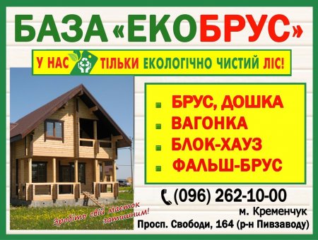 - брус, дошка, рейка;- вагонка дерев'яна;- дерев'яні душі;- дрова.