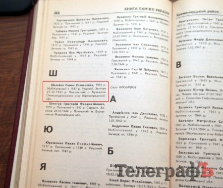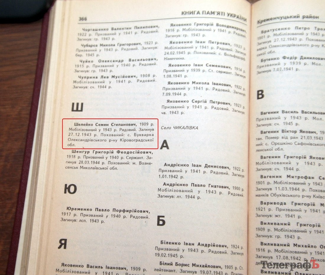 Кременчужанин поехал в село Букварка, чтобы занести в списки погибших имя Семена Степановича, который, согласно записи в книге, погиб 27 декабря 1943 года в возрасте 34 лет.