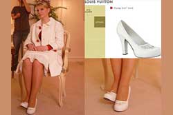Завершують картину білі туфлі ‘Луї Віттон’. Саме їх Тимошенко одягнула, виїжджаючи з Києва до французької столиці. Традиційно взуття цієї фірми коштує 600 доларів.