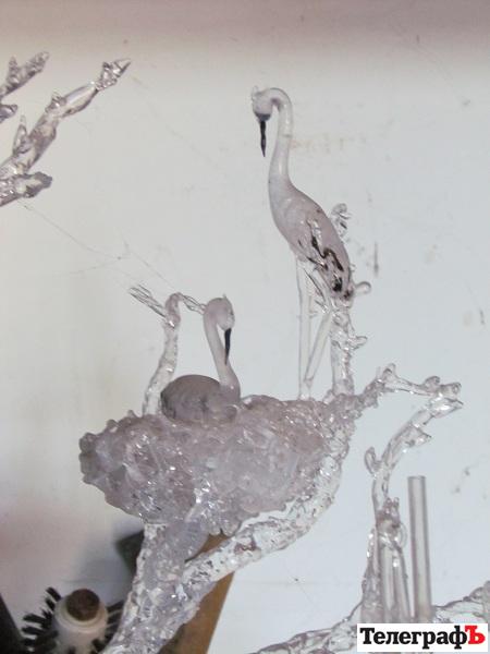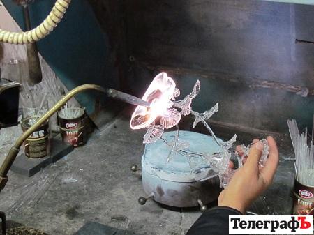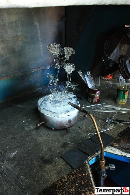 Виталий Демченко – кварцедув из Светловодска с 23-летним опытом работы – рассказал «Телеграфу», что счастлив своим увлечением, которое позволяет ему не думать ни о времени, ни о каких-то других бесполезных вещах. Его мастерская – это горелки, станок, запас штабиков плавленного хрусталя, всевозможные колбочки, проигрыватель CD-дисков и, собственно, работы Виталия, эскизы для которых, по его словам, создает сама жизнь.