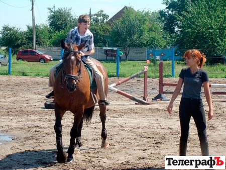 Артем та його тренер Юлія Левіна показують глядачам вправи з іпотерапії. Колись Артем відвідував Центр реабілітації. Сьогодні його хобі – їзда верхи. Три роки поспіль тато возить Артема до кінно-спортивної школи на заняття з іпотерапії. Школа на Молодіжному, у погану погоду хлопця доводиться переносити на руках, та все це не зупиняє батьків Артема. Бо хлопець страшенно любить їздити верхи, любить коней і зовсім їх не боїться. Втім, Артем не боїться нікого – про це «Телеграфу» розповіла його мама Яна. До речі, крім іпотерапії, Артем ще їздить і на дельфінотерапію до Партеніту. І це йому теж дуже подобається.