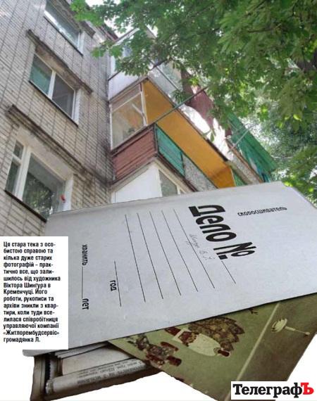 Кілька місяців тому до «Телеграфа» звернувся старший син кременчуцького художника Віктора Шингура. Він розповів, що його батько помер у грудні 2008 року. Вони з братом поховали батька і повернулися до Києва – там обидва живуть. Квартиру батька на вулиці 60 років Жовтня зачинили. Там залишились усі його особисті речі – картини, рукописи, архів. Сини були впевнені, що з ними нічого не станеться – адже квартира приватизована. Пройшов визначений законом час, і брати спробували реалізувати свої права спадкоємців квартири. І тут дізналися, що квартира приватизована громадянкою Л. – співробітницею управляючої компанії «Житлорембудсервіс». Вона зареєстрована в квартирі разом зі своїм сином. Ось що розповів Олександр Шингур: