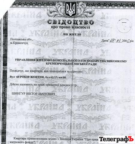 Формально приватизація квартири співробітницею «Житлорембудсервісу» пройшла за процедурою. Коли б не один документ – свідоцтво на право власності на житло. Його 27 січня 2005 року отримав покійний художник Шингур. Отримав офіційно – подав до УЖКГ заяву про бажання приватизувати свою квартиру, і отримав свідоцтво про право власності на житло. Єдине, чого він не зробив – це не зареєстрував документ в МБТІ (Міжміському бюро технічної інвентаризації). Син художника, Олександр, розповів: «Батько терпіти не міг черги. Казав, що двічі приходив до МБТІ, а там черги довжелезні. Він не витримав тієї штовханини та тісняви, махнув рукою і пішов».